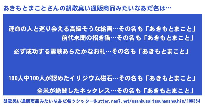 | ヘコむあだ名 | 『あきもー』『豆乳』『あきっちょ』 |