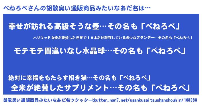 | 意味不明あだ名 | 『ペロリンぺねろぺ』『永久保存ぺねろぺ』 |