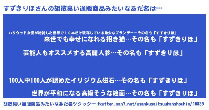 | 意味不明あだ名 | 『ヨモギ科すずきりほ属』 |