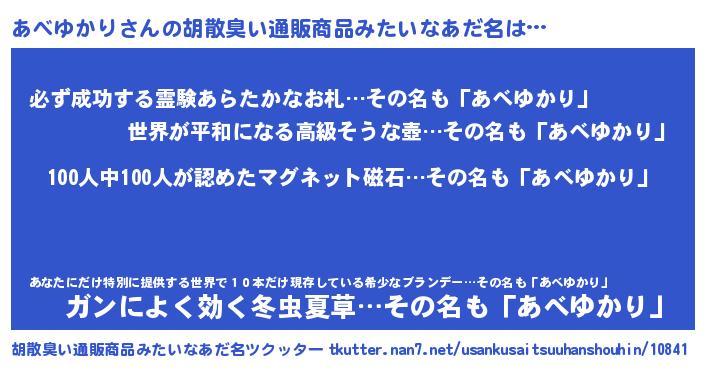 | 意味不明あだ名 | 『眠気覚ましガムあべゆかり味』 |