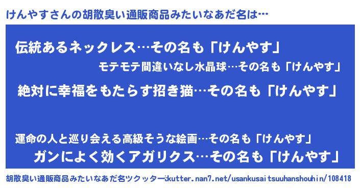 | 意味不明あだ名 | 『永久保存けんやす』『自称けんやす』 |