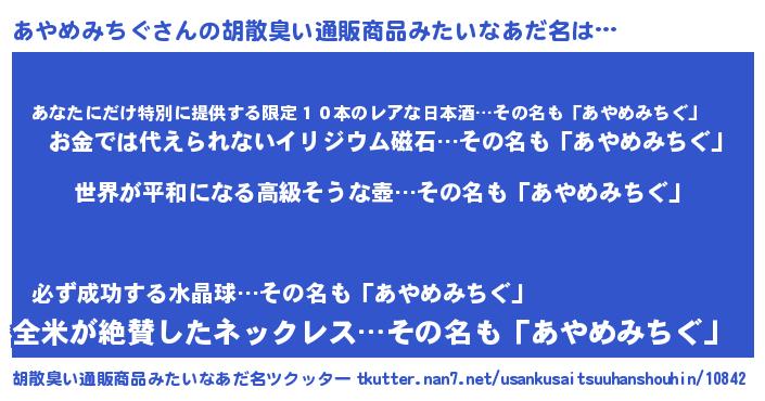 | ヒーロー風カッコイイあだ名 | 『ウルトラあやめみちぐマン』 |