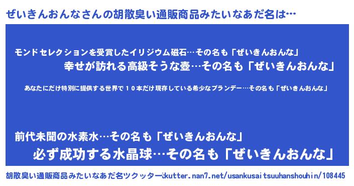 | 意味不明あだ名 | 『住所不定無職ぜいきんおんな(95歳)』 |
