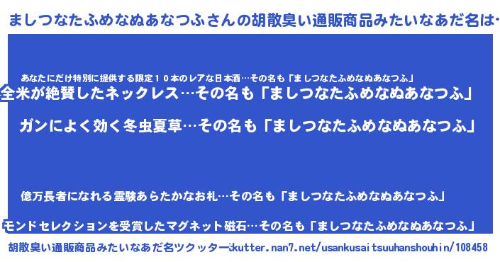| 恥ずかしいあだ名 | 『マシツナタフメナヌアナツフデラックス』 |