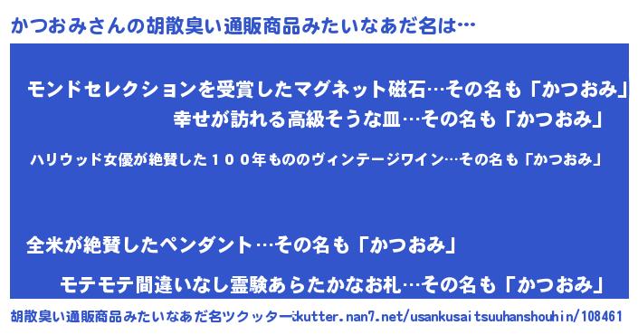 | 意味不明あだ名 | 『住所不定無職かつおみ(4歳)』 |