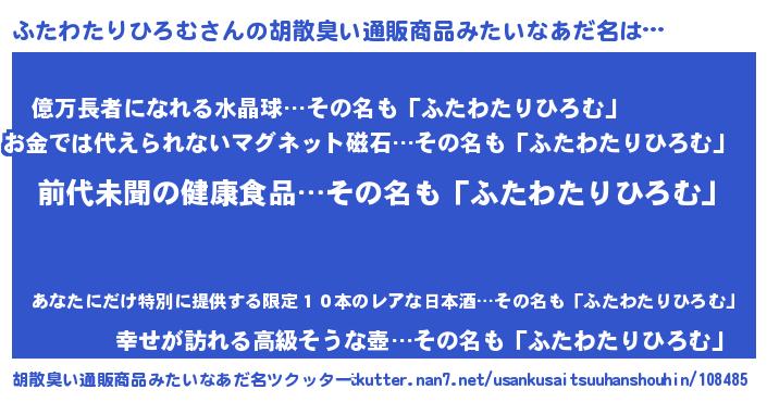 | ヘコむあだ名 | 『ふたわたりひろむ(笑)』『ふたふぇ~』 |