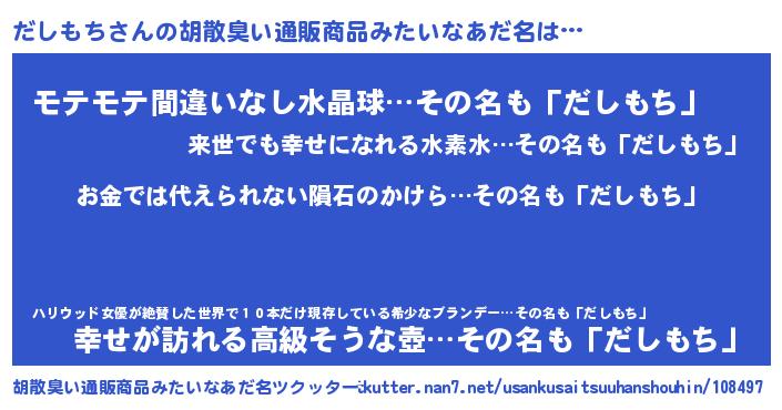 | ヒーロー風カッコイイあだ名 | 『慈愛の使者だしもち』『ネオダシモチ』 |