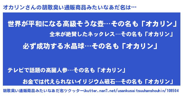 | 欧米人風あだ名 | 『マイケルオカリン』『ダニエルオカリン』 |
