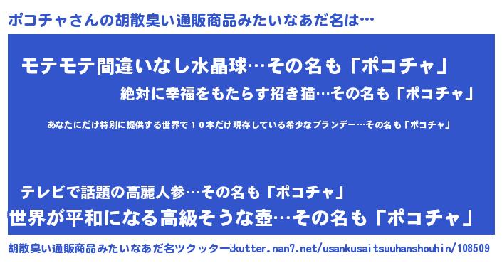 | 男性向けラノベタイトル風あだ名 | 『この素晴らしい世界にポコチャを!』 |