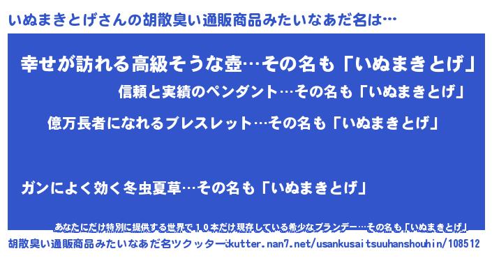 | 男性向けラノベタイトル風あだ名 | 『イヌマキトゲアートオンライン』 |