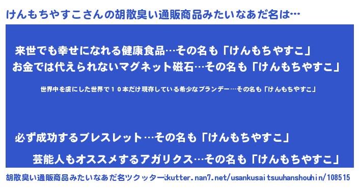 | 意味不明あだ名 | 『住所不定無職けんもちやすこ(89歳)』 |