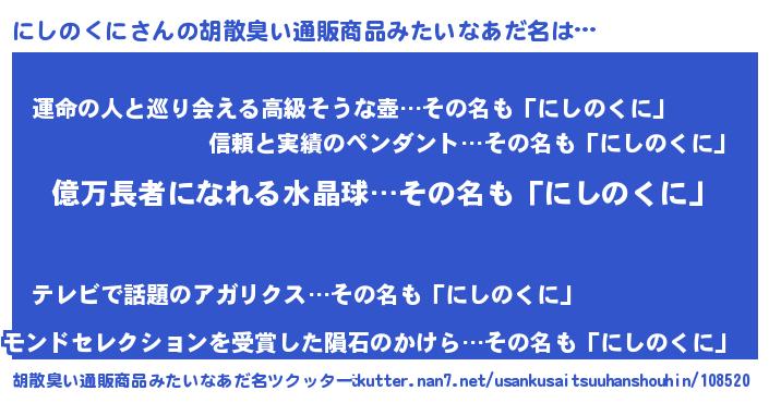 | 意味不明あだ名 | 『ペロリンにしのくに』『自称にしのくに』 |