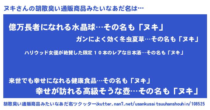 | ヘコむあだ名 | 『ヌキにゅー』『豆乳』『ヌキっちょ』 |