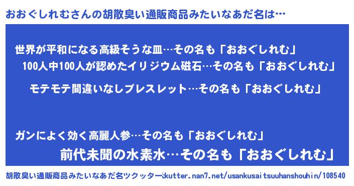 | 男性向けラノベタイトル風あだ名 | 『オオグシレムアートオンライン』 |