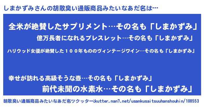 | 意味不明あだ名 | 『住所不定無職しまかずみ(4歳)』 |