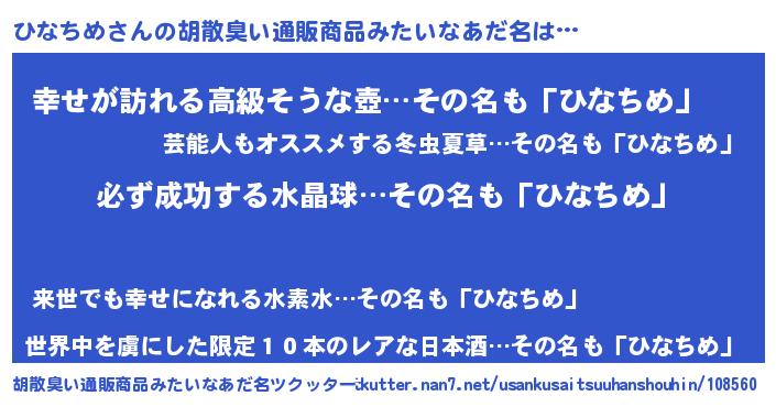 | ヒーロー風カッコイイあだ名 | 『スーパーヒナチメ』『仮面ヒナダー』 |
