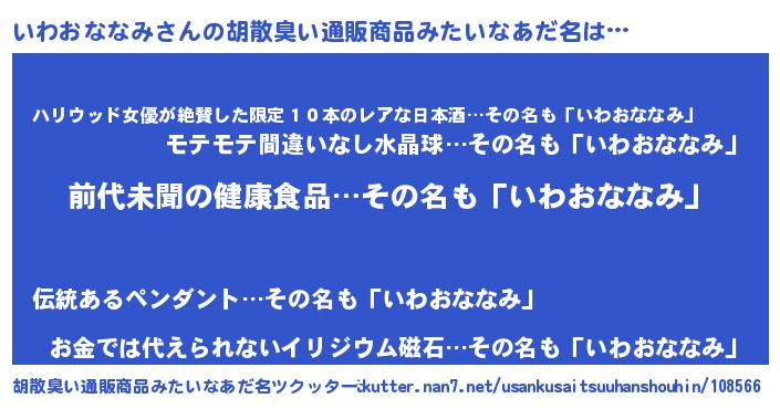 | 可愛いあだ名 | 『いわぷりん』『いわおななみママ』 |