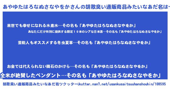 | 恥ずかしいあだ名 | 『アヤユタハロナヌサナヤヲカデラックス』 |