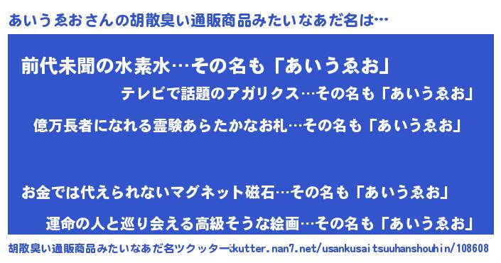 | 男性向けラノベタイトル風あだ名 | 『アイウヱオアートオンライン』 |