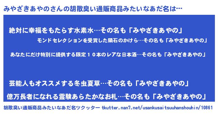 | 意味不明あだ名 | 『住所不定無職みやざきあやの(40歳)』 |