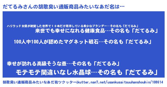 | ヘコむあだ名 | 『だてふぇ~』『だてるみ(遠い目)』 |