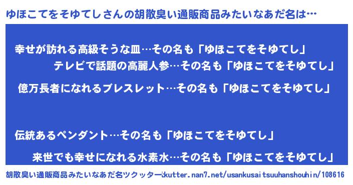| ヒーロー風カッコイイあだ名 | 『スーパーユホコテヲソユテシ』 |