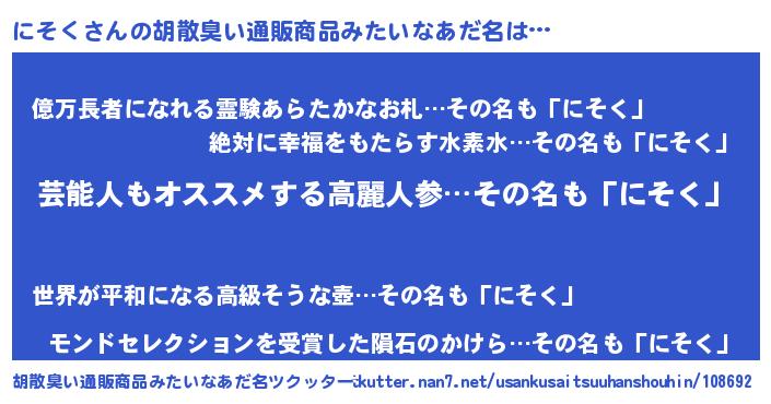 | ヘコむあだ名 | 『にそにー』『にそく(遠い目)』 |
