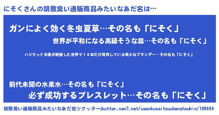 | 男性向けラノベタイトル風あだ名 | 『緋弾のニソク』『ニソクスレイヤー』 |