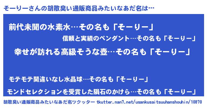 | ヒーロー風カッコイイあだ名 | 『ウルトラそーりーマン』『ネオソーリー』 |
