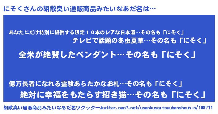 | ヒーロー風カッコイイあだ名 | 『炎刃騎士ニソ』『仮面ニソダー』 |