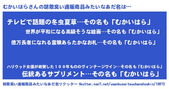 | ヒーロー風カッコイイあだ名 | 『スーパームカイハラ』『魔戒騎士ムカ』 |