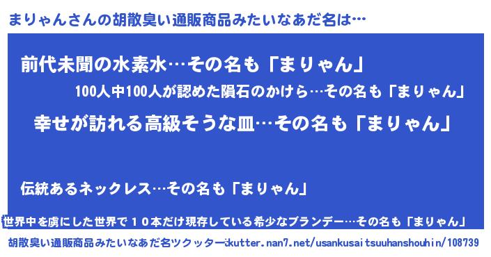 まりゃんさんの胡散臭い通販商品みたいなあだ名をツクッター!