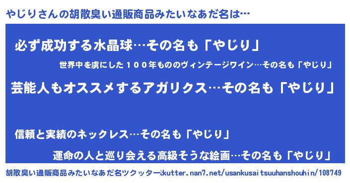 | 意味不明あだ名 | 『自称やじり』『ペロリンやじり』 |