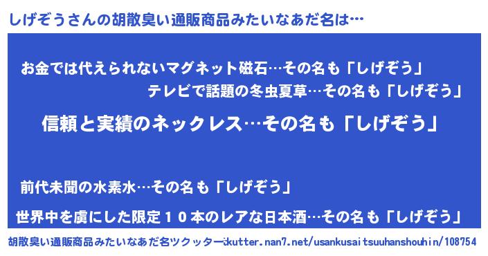 | ヘコむあだ名 | 『しげっぺ』『しげぞう(小並感)』 |