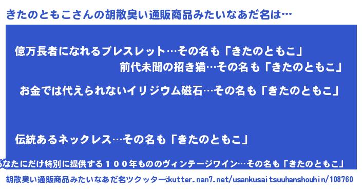 | ヘコむあだ名 | 『きたにゅー』『きたのともこ(笑)』 |