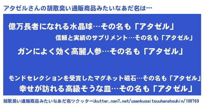 | 女子向けラノベタイトル風あだ名 | 『アタゼルなんてお断りですっ。』 |