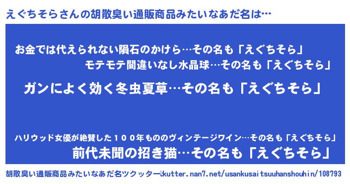 | 意味不明あだ名 | 『自称えぐちそら』『永久保存えぐちそら』 |