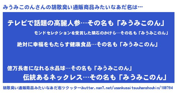 | 意味不明あだ名 | 『永久保存みうみこのん』 |