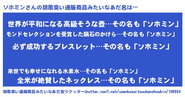 | 男性向けラノベタイトル風あだ名 | 『ソホミンの憂鬱』 |