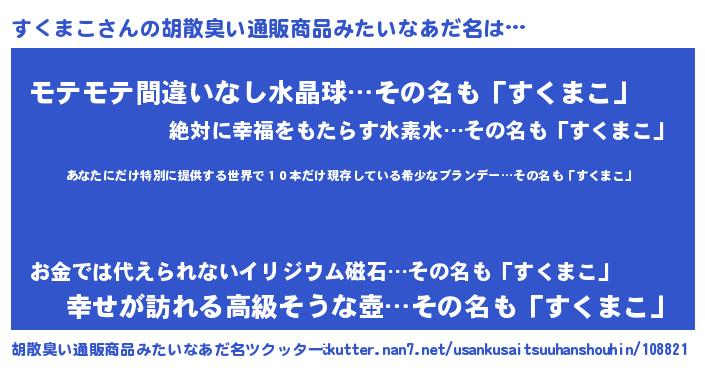| 意味不明あだ名 | 『住所不定無職すくまこ(81歳)』 |