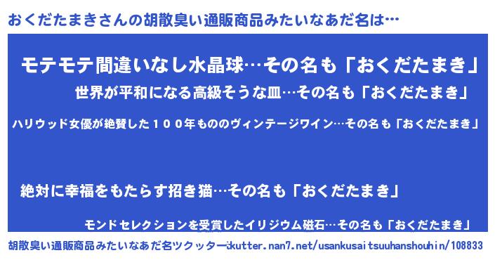 | 意味不明あだ名 | 『住所不定無職おくだたまき(10歳)』 |