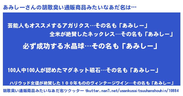 | 意味不明あだ名 | 『ペロリンあみしー』『自称あみしー』 |