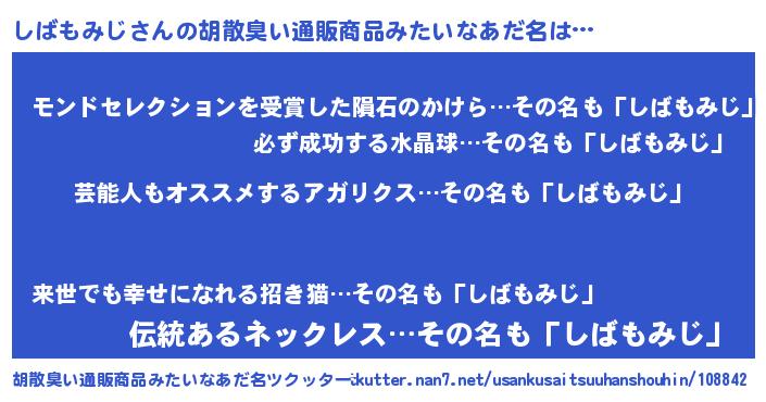 | ヘコむあだ名 | 『しばっ子』『しばもー』『豆乳』 |