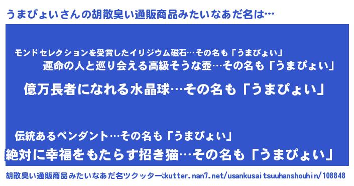 | ヘコむあだ名 | 『うまにゅー』『うまぴょい(笑)』 |