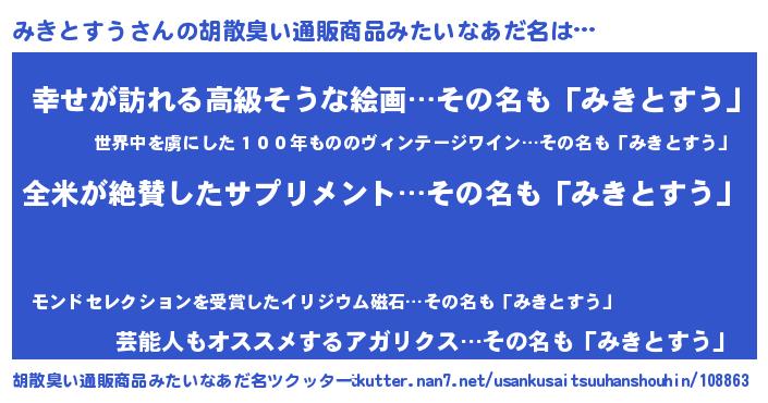 | 意味不明あだ名 | 『とにかく怪しいみきとすう』 |