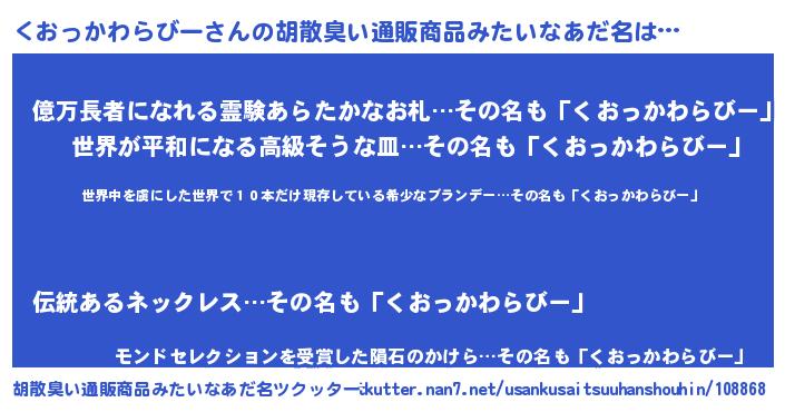 | 恥ずかしいあだ名 | 『プリティーくおっかわらびー』 |