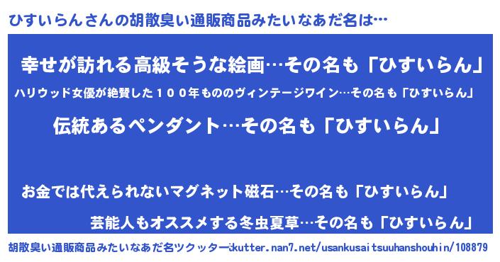 | 意味不明あだ名 | 『とにかく怪しいひすいらん』 |