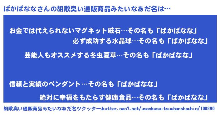 | ヘコむあだ名 | 『ばかばなな(震え声)』『ばかにー』 |