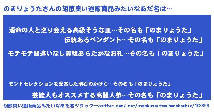 | 男性向けラノベタイトル風あだ名 | 『ノマリョウタアートオンライン』 |