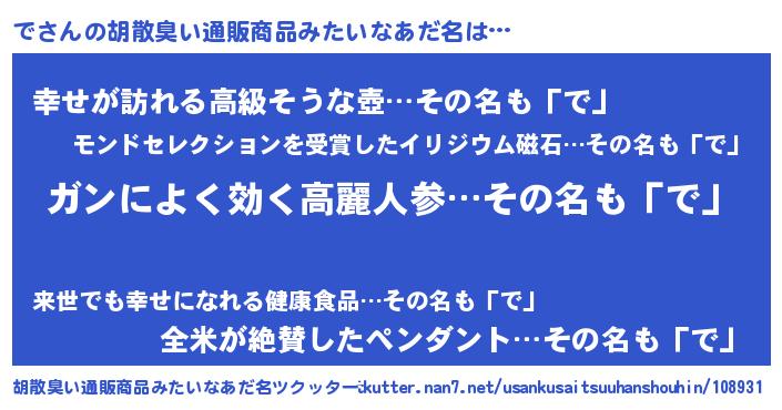 | ヘコむあだ名 | 『つくし』『で太郎』『で(震え声)』 |